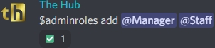 To remove a role, use the command $adminroles remove and mention the role you would like to remove. You can remove multiple roles in one command by just spacing out each role.
