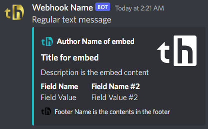 Author Name & Author Image URL are not to be confused with the username & avatar that the webhook name & avatar uses.